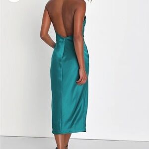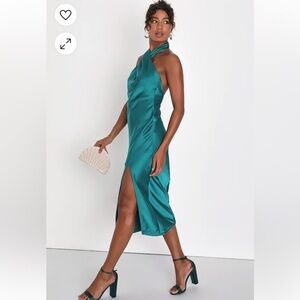 LULU’S Beyond Classy Teal Green Satin Halter Midi Dress SIZE XL NWT