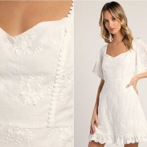 $69 Retail LULUS Bridal Bachelorette Engagement Bridal Shower Honeymoon Flowy Embroidered Floral Eyelet Boho Mini NWOT