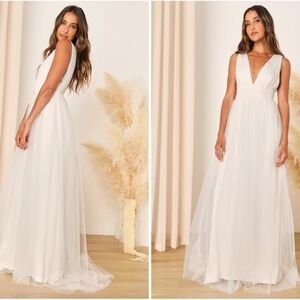 $98 Retail LULUS Wedding Sexy Classic Flowy Elegant Romantic Heavenly Hues Tulle Dreamy Maxi Dress NWOT (new without tags)