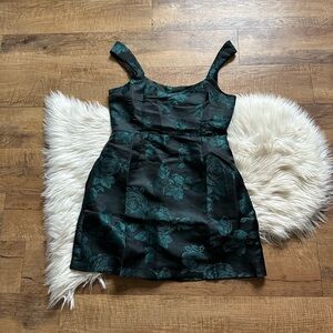 LULU’S Brighter Side Black And Green Floral Satin Jacquard Mini Dress