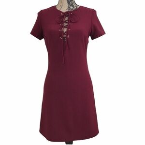 LULUS Burgundy Lace-up Short Sleeve Dress