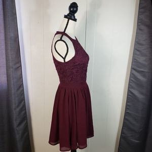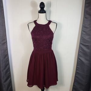 LULUS Burgundy Lovers Game Lace Skater Halter Dress Size Extra Small