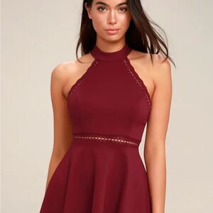 LULU'S Burgundy Red Halter Top Skater Dress Size Medium