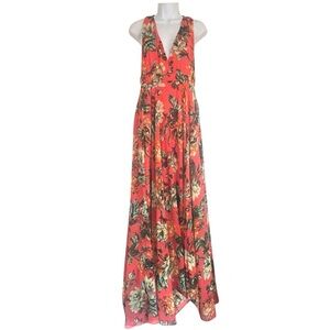 LULUS Countryside Manor Coral Red Floral Print Maxi Dress Size M NWT