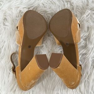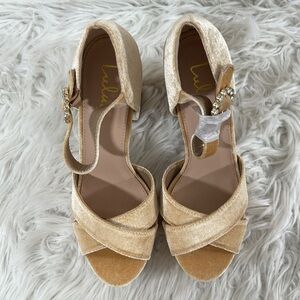 LULUS Crushest Champagne Velvet Rhinestone Ankle Strap Chunky Heels Size 10 NEW