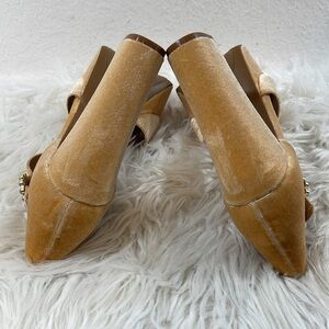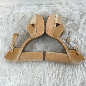 LULUS Crushest Champagne Velvet Rhinestone Ankle Strap Heels Size 10 NEW