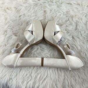 LULUS Crushest White Satin Rhinestone Ankle-Strap Chunky Heels Size 8.5 NEW