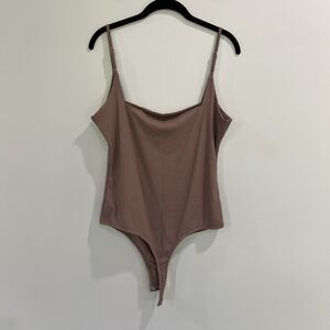 LULUS Danyelle Bodysuit Ribbed Knit Square Neck Spaghetti Strap Size XL