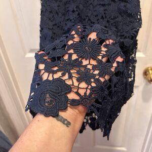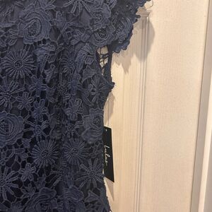NWT. No flaws. Lined. Open back. Lace. Beautiful blue color.