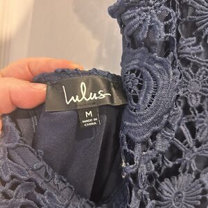 LULUS Dress Love Poem Crochet Lace Mini Open Back Navy Blue Medium NWT Wedding