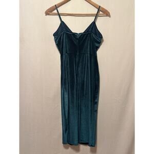 LULUS Dress M Velvet Kelly Green Faux Wrap Holiday Cocktail Fairy Goth