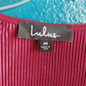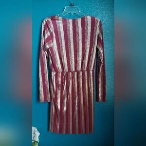 LULUS Dress Medium Gold and Burgundy Striped V.I.P. Party Pleated Long Sleeve