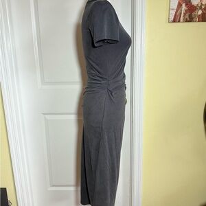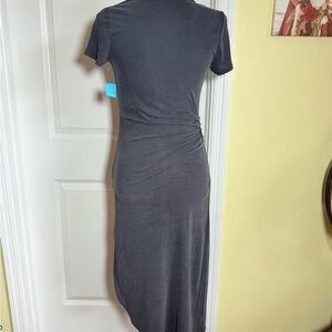 Midi length, ruched side, asymmetrical hem at the bottom. Excellent condition!!