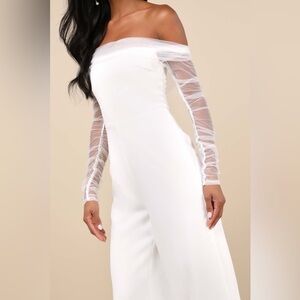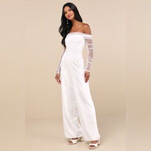 LULU’S Eternal Bliss White Tulle Off The Shoulder Wide-Leg Jumpsuit