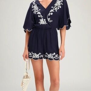 LULU’S Ever After Navy Blue Embroidered Romper Size S NEW WITH TAG