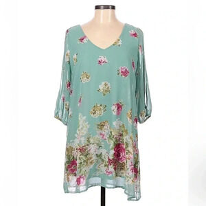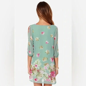 LULUS Exclusive Shifting Dears Sage Green Floral Print Dress Open Sleeves Size M