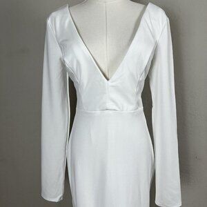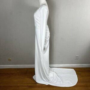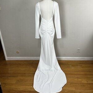 LULUS Extravagant Love White Backless Long Sleeve Ruched Maxi Dress Size Medium