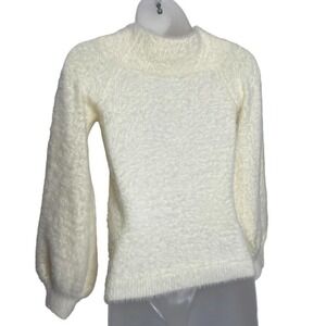 Lulus Ivory Eyelash Knit Mock Neck Sweater Size Small Long Sleeve
