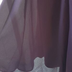 Semi-sheer shoulder straps, modified halter neckline, fitted bodice with princess seams, lightweight woven chiffon, flirty skater skirt, flares below a banded waist. Pre-owned in excellent condition. Cocktail, party, holiday, wedding guest, fall, jeweltone