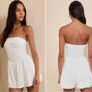 You'll have everyone at your beck and call when you look so sweet in the Lulus Wait On Me White Ribbed Knit Strapless Romper! This flirty romper features a ribbed knit, strapless bodice that has a straight, elasticized neckline with chic foldover trim and a seamed details. A fitted, Basque-style waist sits atop lightweight, crepe woven shorts with a flowy silhouette. Pair with your favorite jewelry for a casually stunning date night look!