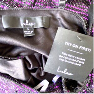 LULUS Glow Goals Black & Purple Sequin Cowl Neck Maxi Dress Party/Cocktail L NWT