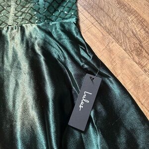 LULU’S Going Glam Dark Green Sequin Bustier Skater Dress
