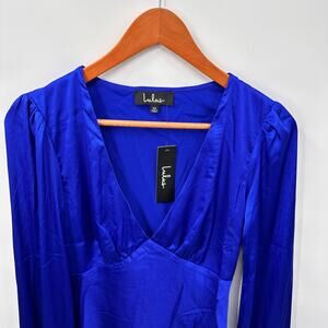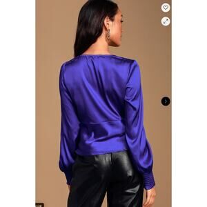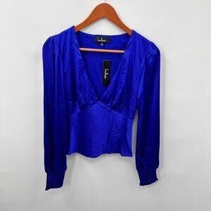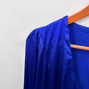 LULUS Head Held High Cobalt Blue Satin Long Sleeve Silky Blouse // XS