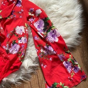 LULU’S Hearts Abloom Red Floral Print Ruffled Long Sleeve Bodysuit