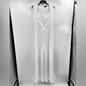 LULUS Jumpsuit Womens XL White Square Neck Lined Stretch Wide Leg