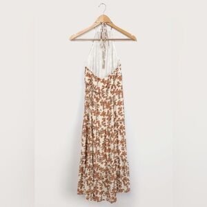LULU’S Keep It Sweet Ivory Floral Print Halter Tiered Midi Dress