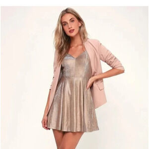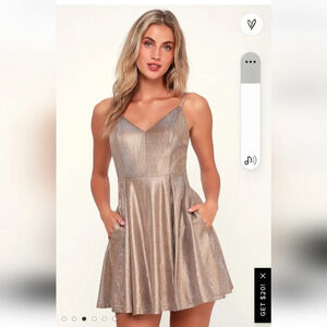 LULU'S Keeps Getting Better Gold Skater Dress. SIZE XS NWT