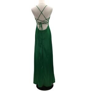 LULU'S L Green VNeck Enchanting Appearance Side Slit Lace-Up Maxi Dress NEW B109