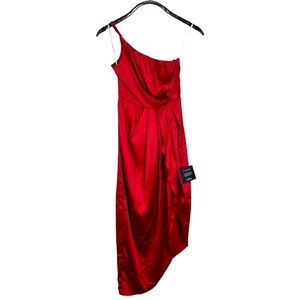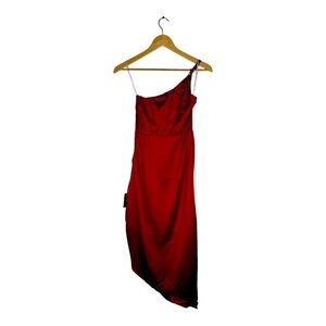 LULUS LAW OF ATTRACTION RED SATIN ONE SHOULDER ASYMMETRICAL MIDI COCKTAIL DRESS