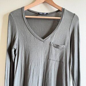 LULUS Long Sleeve V Neck Midi Dress Army Green Womens Size S w/ Pocket C…