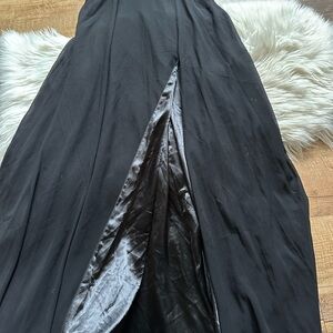 Airy woven chiffon ties at the shoulders to support this graceful A-line dress with a flattering square neck bodice and a fitted waist. Flowing maxi skirt sways effortlessly from side to side thanks to the thigh-high slit at the side. Hidden back zipper/clasp.