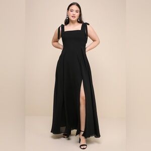 LULU’S Love Me Forever Black Tie Strap Square Neck Maxi Dress
