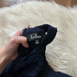 LULU’S Love Poem Navy Blue Lace Mini Dress