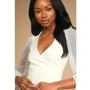 LULUS Love That Lasts Forever Ivory Balloon Sleeve Bodycon Mini Dress, sz XL