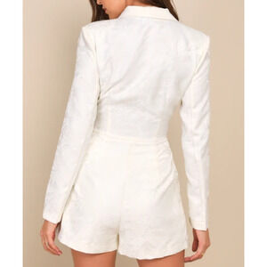 -LULUS M Confident Sophistication Ivory Jacquard Collared Blazer Romper B…