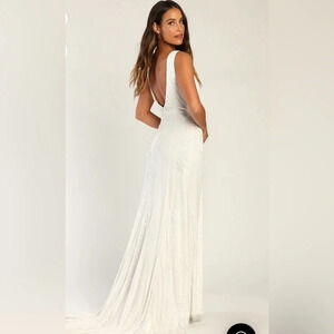 LULU'S M White Passionate Romance Beaded Sequin Mermaid Maxi Dress NEW 167