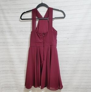 LULUS MAROON RACER BACK WIDE STRAP SKATER DRESS, W CHIFFON SKIRT OVERLAY, SZ XS
