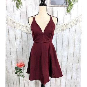 LULU'S MINI MAROON STRAP DRESS, SIZE MED