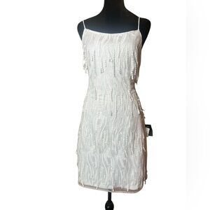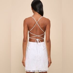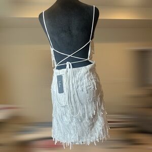 LULUS Making Magic White Fringe Lace-Up Mini Dress Size XL NWT Party Cocktail
