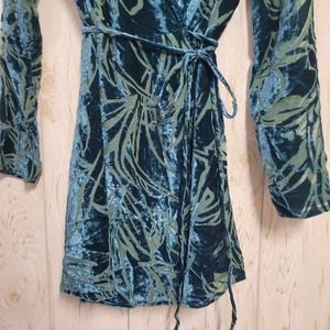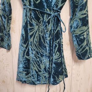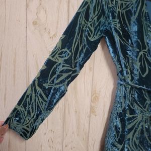 LULU'S Modern Decadence Long Sleeve Teal Blue Floral Velvet Mini Wrap Dress