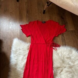 LULU’S Much Obliged Red Wrap Maxi Dress
