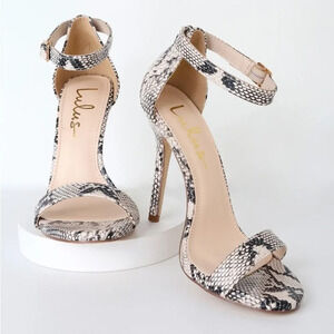 LULUS NWOT Elsi Beige Snake Single Strap Heels