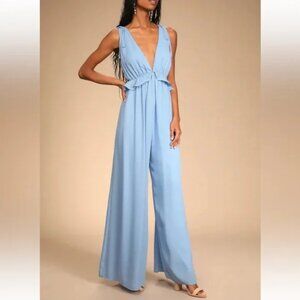 LULUS NWT EMBRACE THE ROMANCE LIGHT BLUE BACKLESS WIDE LEG JUMPSUIT