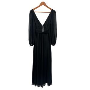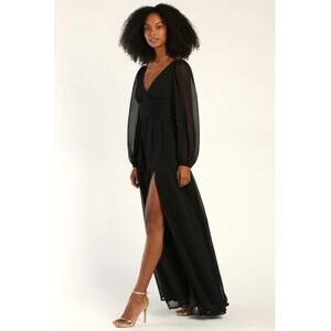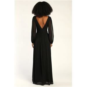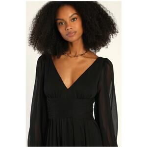LULU'S NWT Enchant My Love Black V-Neck Long Sleeve Maxi Dress // XS