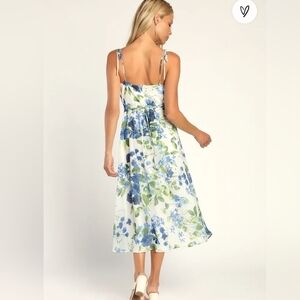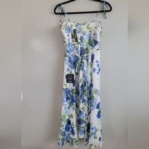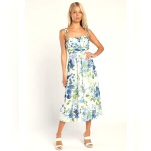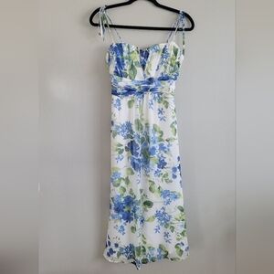 LULUS NWT Pretty Poetic Blue White Floral Chiffon Midi Dress Y2K sz M