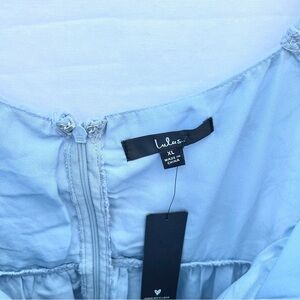 LULUS | NWT XL EXCEEDINGLY ELEGANT BLUE FLORAL APPLIQUÉ BUSTIER MIDI DRESS
